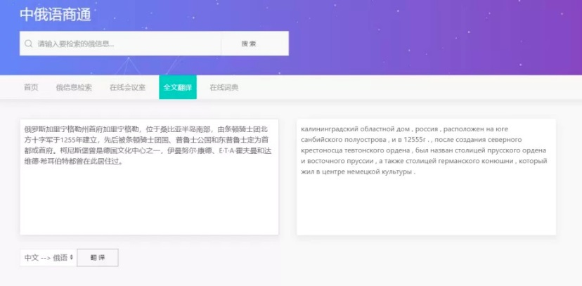 2. Russian-Chinese automatic translation platform: translate between Russian and Chinese within seconds.
