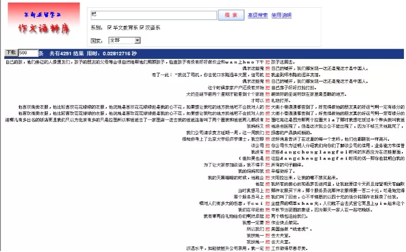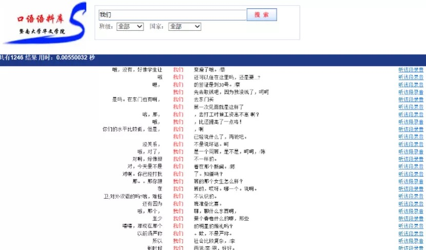 The project has built an online retrieval system for the global Chinese language corpus, including (1) a web retrieval system for overseas Chinese example sentences; (2) a web retrieval system for overseas Chinese words.