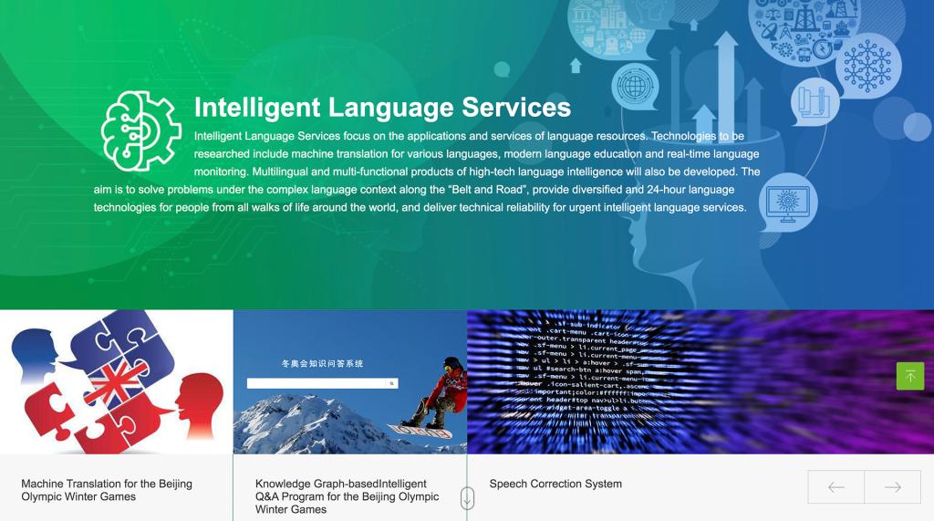 The design style of the English website is simple with a sense of science and technology. The home page of the website presents users with a key-shape against the background picture of the earth, on which the word “Hello” in many languages are displayed, implying that “Language is the Key to Unlock the World”. This is in line with ACLR’s efforts for language resources building, and matches its goal of “Document and Protect the over 7000 world languages”. The lower part of the home page can be browsed by scrolling up or down. 3 scrolling pages show the representative contents of ACLR’s Three Programs, namely Language Resources Bank, Language and Culture Museum, and Intelligent Language Services.