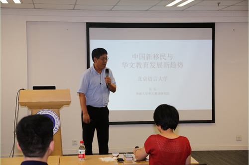 On July 4th, 2018, Mr. Ren Hong, Distinguished Professorof the Institute of Chinese Education, Huaqiao University and Advisor of World Chinese Language Association was invited to give the academic lecture on New Chinese Immigrants and Latest Trends of Chinese Education. The lecture was presided over by Yao Min from Beijing Chinese Language and Culture College, a core member of ACLR’s Construction of the Overseas Chinese Language Resources Database project.