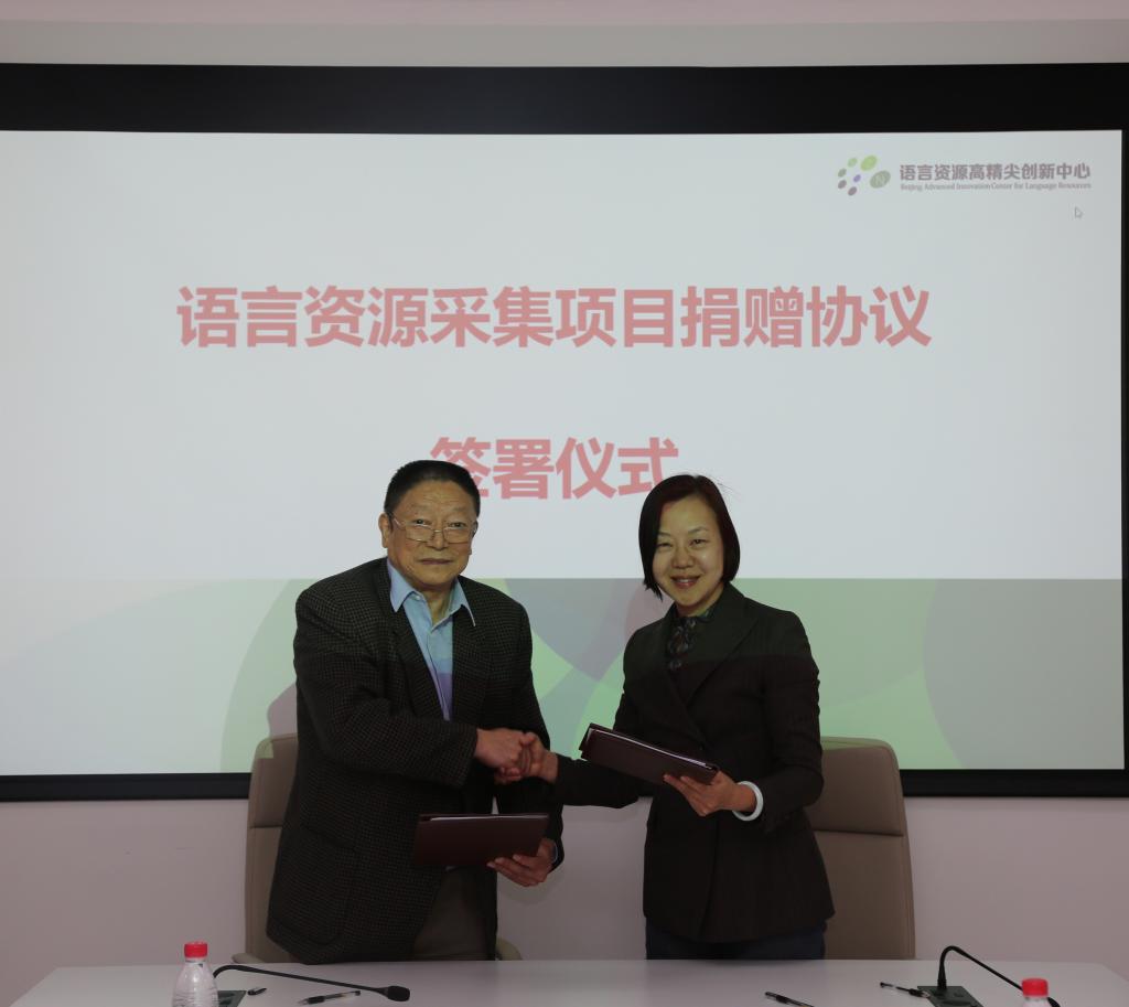 2019年5月13日下午,北京语言大学教育基金会与深圳市九藤文化教育基金会在综合楼盛成厅举行项目捐赠签约仪式。北京语言大学语言资源高精尖创新中心(以下简称“中心”)主任李宇明、北京语言大学教育基金会秘书长金珂、深圳市九藤文化教育基金会理事长刘会远、中心副主任刘晓海等出席捐赠仪式。仪式由中心副主任田列朋主持。