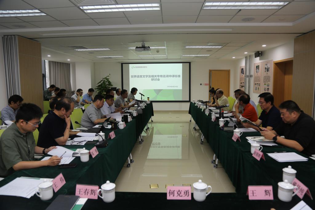 2019年8月20日上午,语言资源高精尖创新中心(以下简称“中心”)在北京语言大学综合楼二层清常厅召开“世界语言文字及相关专有名词中译标准”研讨会。来自外交部、民政部、中央编译局、中国外文局、新华社、全国科学技术名词审定委员会、中国社会科学院语言研究所、中国社会科学院民族学与人类学研究所、北京语言大学、北京外国语大学、上海外国语大学、广东外语外贸大学、天津外国语大学、浙江师范大学、首都师范大学、中央民族大学、商务印书馆、北京语言大学出版社、新疆外文翻译协会等政府部门、高校、出版机构和协会有关负责人、专家共计30余人出席会议。会议由中心常务副主任杨尔弘教授主持。