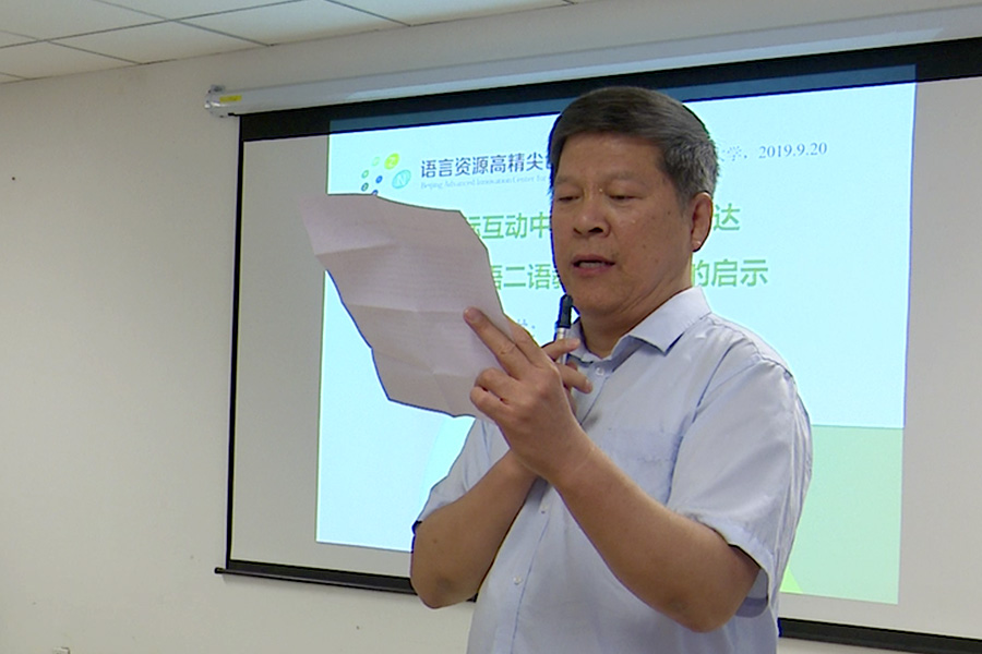 陶红印教授报告主要从语言的信息传递、情感、态度等多方面的功能表达展开论述,他讲述了如何从情态表达等功能角度理解汉语结构问题,同时说明了言语情态表达中多模态(例如词汇、语法、韵律和身态手势等)手段的重要性。陶教授着重介绍了将情态表达等角度的研究成果运用到汉语二语教学中的方法,并希望该方法能够为汉语二语教学和测试等领域提供一个新的研究方向。讲座结束后,现场观众与陶红印教授积极讨论互动,气氛热烈,不时碰撞出学术火花,与会者收获颇丰。