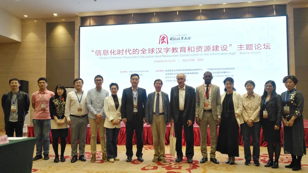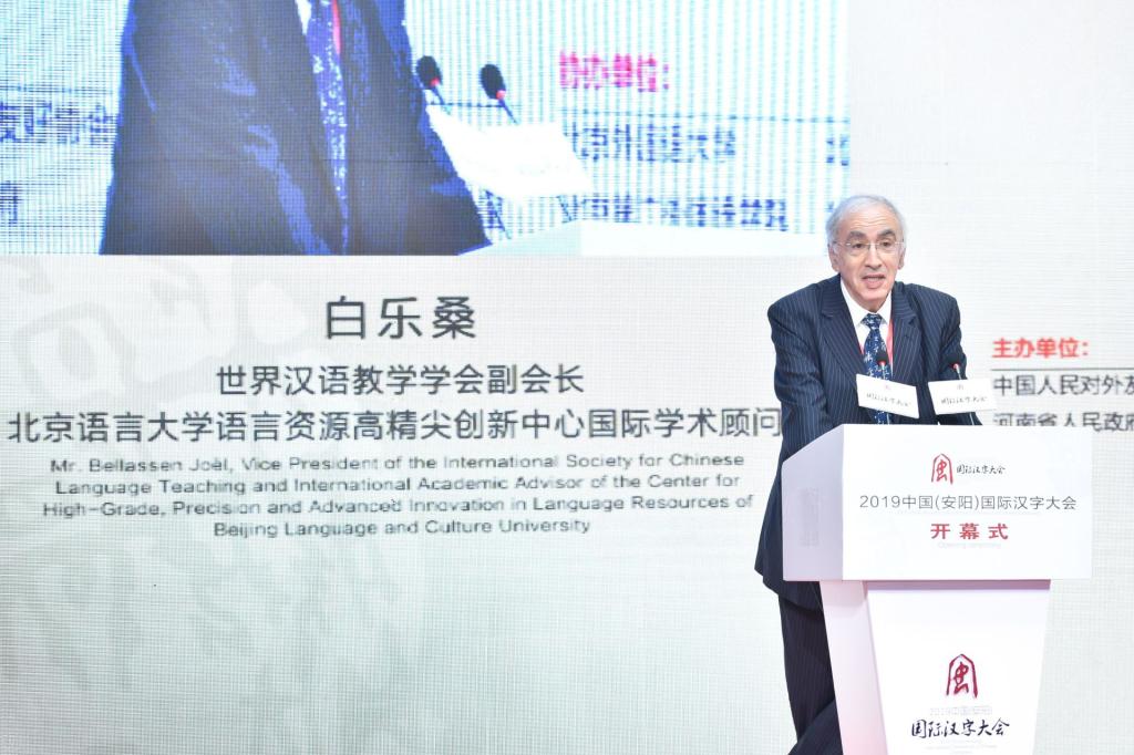 10月21-23日,2019中国(安阳)国际汉字大会在中国八大古都之一的安阳市成功举行。本届大会以“汉字与世界”的主题,来自中国、美国、德国、法国、俄罗斯、喀麦隆、日本、韩国、泰国、尼泊尔、老挝、刚果(金)等29个国家的知名汉学家、国内专家学者和留学生代表以及国外华文教育机构和国内外有关企事业单位代表共计300余人参加大会。北京语言大学语言资源高精尖创新中心国际学术顾问白乐桑教授以及中心特邀专家、喀麦隆中教部汉语总督学杜迪先生分别作大会开幕式主旨发言。