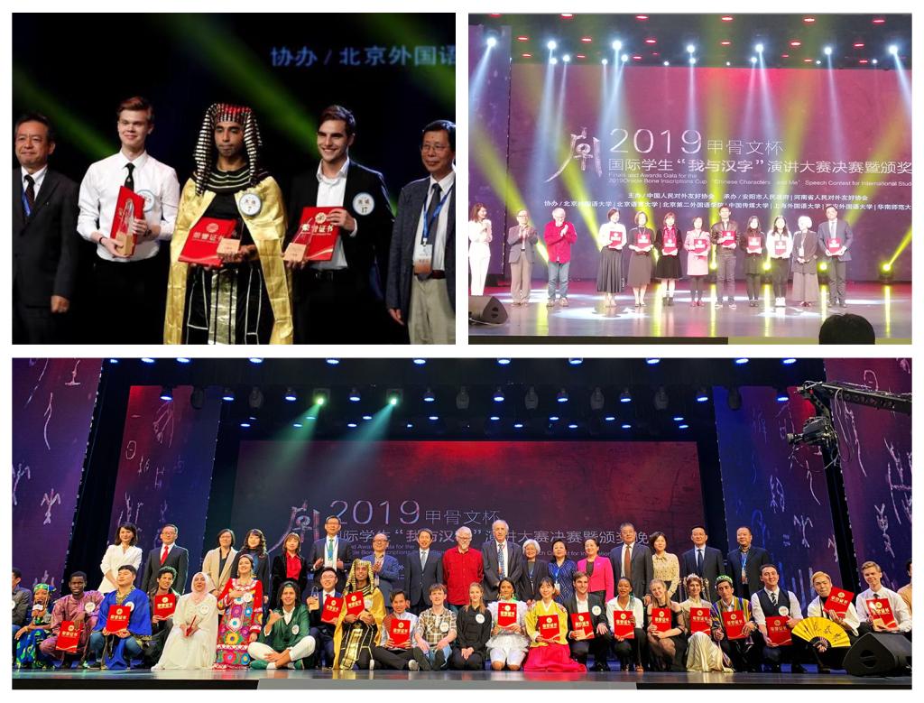 当天晚上,“2019‘甲骨文杯’ 国际学生‘我与汉字’演讲大赛”决赛在安阳职工文化体育中心举行。本次比赛北语选派的法国留学生周诚、俄罗斯留学生娜思佳、刚果(金)留学生安朵等三位优秀学子参赛,在北语国际学生管理处组织协调下,北京语言大学获得优秀组织奖,周诚同学获得三等奖,娜思佳、安朵两位同学获得优秀奖。通过本次大赛,留学生同学结交了朋友,增进了友谊,收获满满。