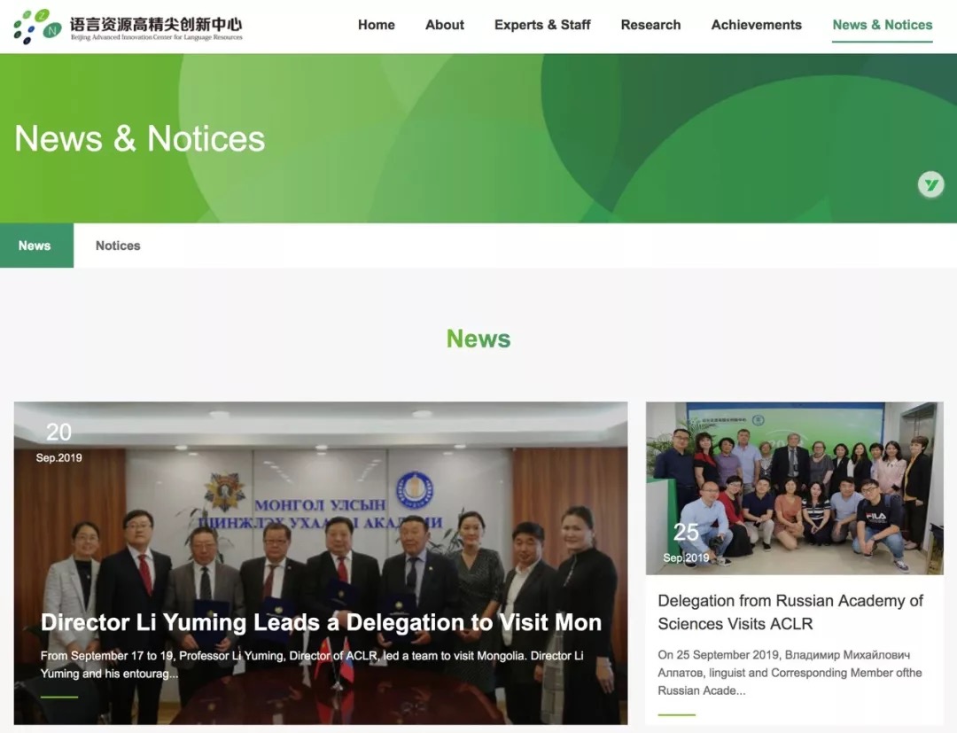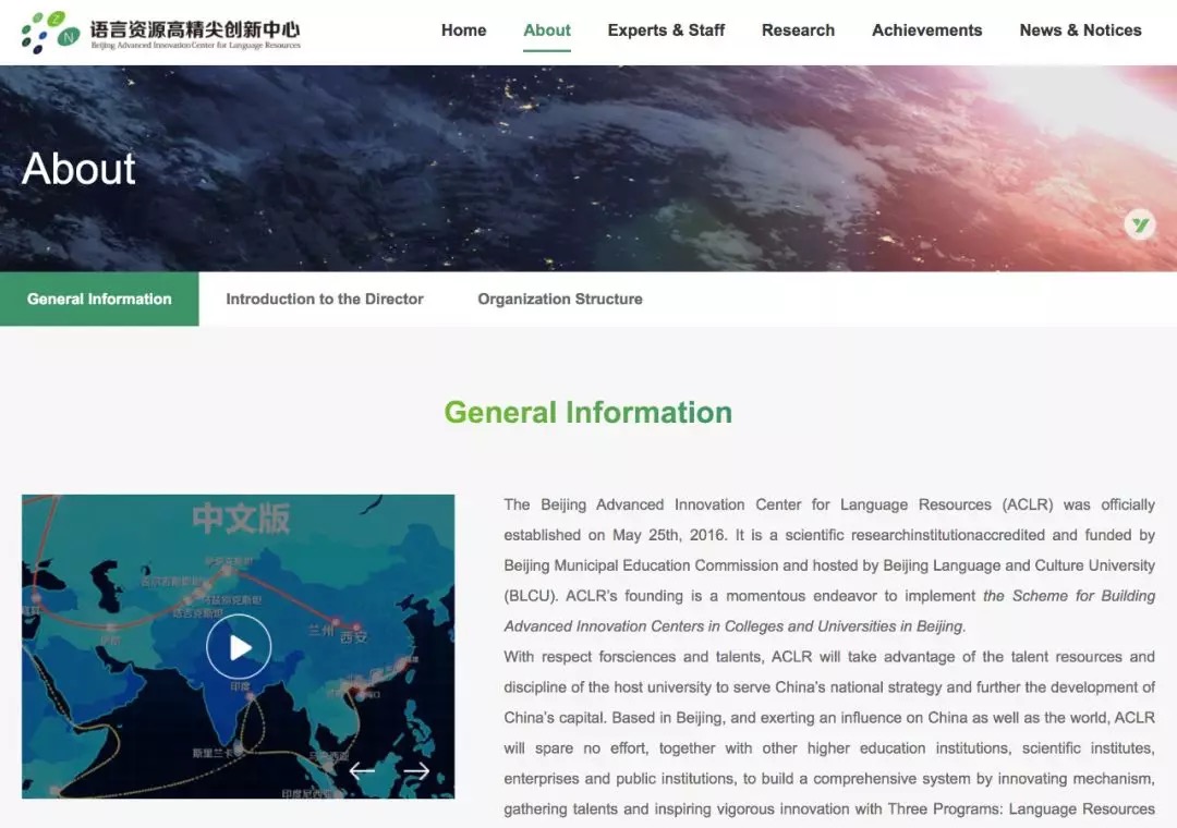 2019年11月15日,语言资源高精尖创新中心(ACLR)英文版官网(http://yuyanziyuan.blcu.edu.cn/en)正式上线,这是中心不断提升国际化水平的又一举措,不仅有利于更好地向世界展示语言资源、语言智能方面的最新成果,也将进一步促进相关领域的国际交流与互动。