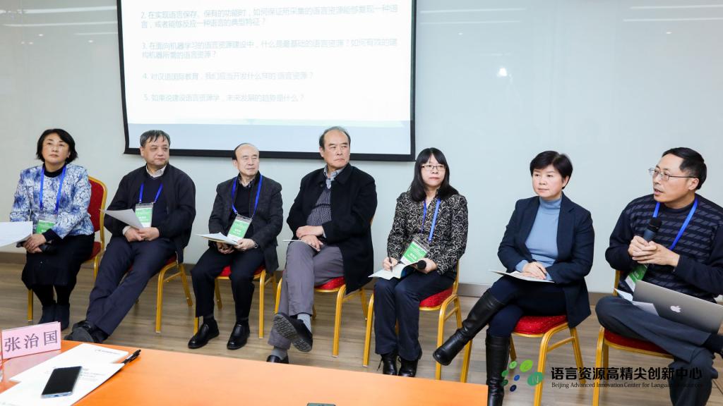随后举行的“语言资源建设的开发与应用”圆桌论坛由中心常务副主任杨尔弘教授主持。黄行研究员、孙茂松教授、赵世举教授、赵蓉晖教授、郭风岚教授、张治国教授等嘉宾围绕“《万国语言志》编写过程中所需的语言资源类型”、“语言保存、保有过程中,如何保证采集的语言资源能够复现该语言或反应其典型特征”、“面向机器学习的语言资源建设中,最基础的语言资源是什么并如何有效构建”、“面向汉语国际教育应当开发何种语言资源”以及“建设语言资源学的必要性和未来发展趋势”等问题展开讨论。