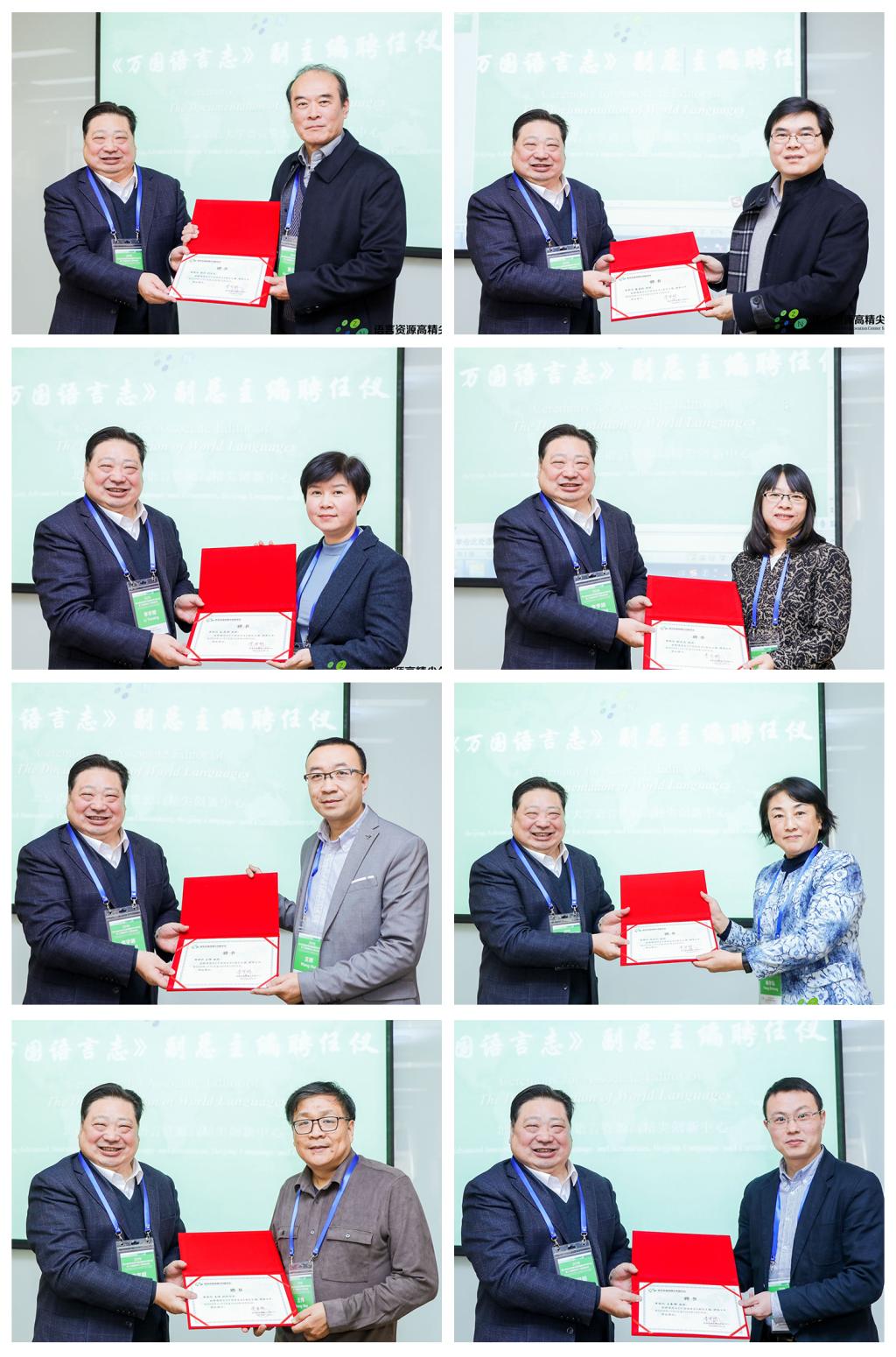 李宇明教授为八位专家颁发《万国语言志》副总主编聘书