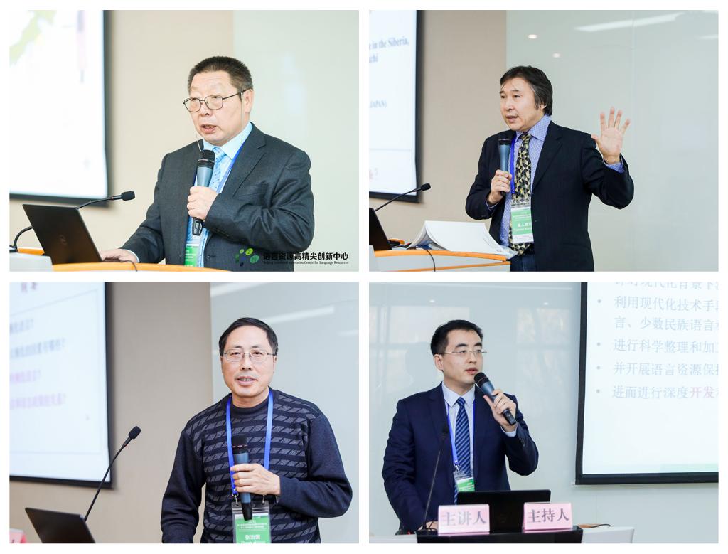 围绕“语言濒危与语言资源的保护开发问题”主题,内蒙古大学那顺乌日图教授作《蒙古语言资源平台建设的现状与展望》报告,探讨蒙古语语言资源保护与开发现状、面临的问题及解决途径;日本东京外国语大学亚非语言文化研究所吴人德司教授作《俄罗斯西伯利亚土著语言的现状:聚焦楚科奇语》报告;上海海事大学张治国教授作《濒危语言和语言政策的关系》报告,表明要理性看待濒危语言、更科学地保护濒危语言;中心副主任刘晓海副研究员作《以用为要:中国语言资源保护工程成果应用初探》报告,针对语保资源类和规范标准类成果的开发应用阐述了自身的学术思考。