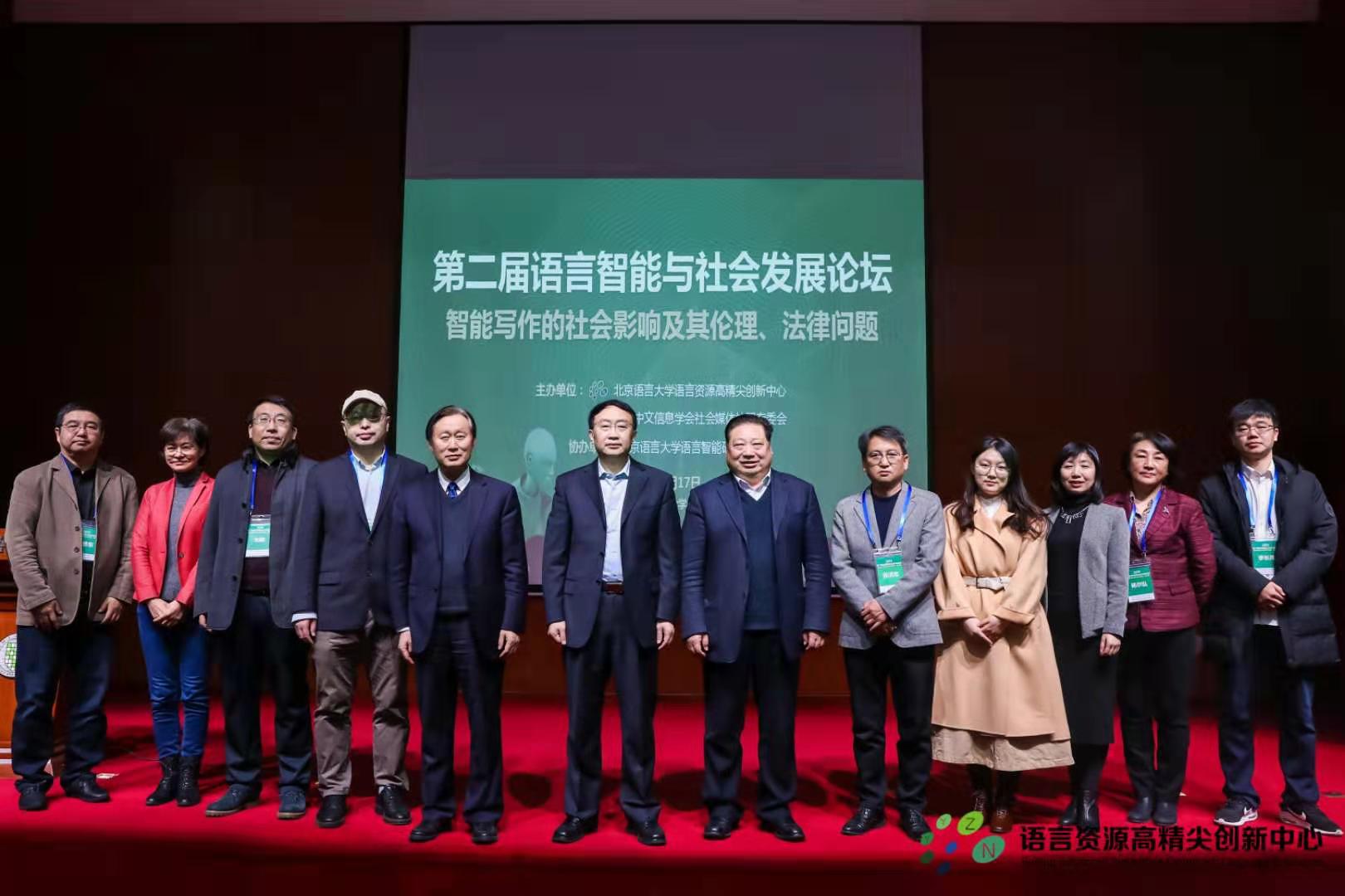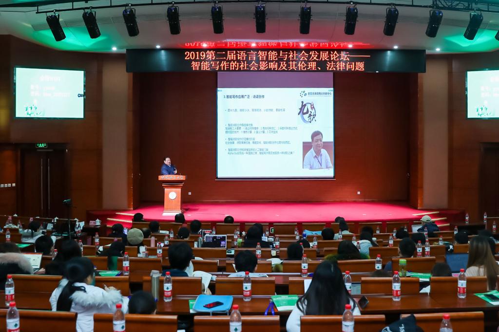 2019年12月17日,第二届语言智能与社会发展论坛在北京语言大学逸夫报告厅隆重举行。本次论坛主题为“智能写作的社会影响及其伦理、法律问题”,教育部科技司雷朝滋司长,北京语言大学党委书记倪海东,北京语言大学党委常委、副校长张旺喜,北京语言大学语言资源高精尖创新中心主任李宇明教授及语言学界、机器翻译界、新闻传播界和企业界近200名嘉宾出席本次论坛。论坛由北京语言大学语言资源高精尖创新中心(以下简称“中心”)和中国中文信息学会社会媒体处理专委会联合主办,北京语言大学语言智能研究院协办。