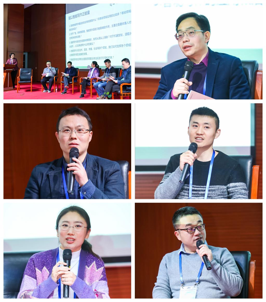随后,中心常务副主任杨尔弘教授主持“赋以智能写作正能量”圆桌讨论。中国人民大学社会与人口学院院长冯仕政教授、首都师范大学国际文化学院王春辉教授、字节跳动人工智能实验室周浩研究员、北京师范大学艺术与传媒学院张伦副教授、清华大学计算机系刘知远副教授围绕“智能写作最适合的应用场景、应用最多和较成功的领域分别是什么?”“对于广告、新闻等领域,智能写作目前是否只能是辅助作用,主要还需依靠人对生成文本的修改和润色?”“智能写作潜在的负面影响有哪些,如何从源头上消除?针对机器发帖、话题水军,从技术、人文角度有何好的建议?”“智能写作涉及技术、语言、传播、社会等多个领域,如何发挥各领域作用,让其更加健康地发展?”“智能写作的应用和治理是否需要法律法规进行引导和约束?”等问题进行充分交流,各位专家的观点引起现场观众共鸣,反响热烈。