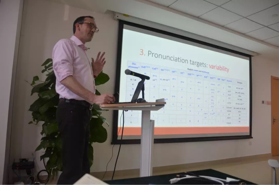 2019年10月31日至11月1日,北京语言大学信息科学学院智能语音习得实验室、语言资源高精尖创新中心共同举办了为期两天的“智能语音习得技术”研讨会。此次研讨会邀请诸多致力于语音学研究的中外学者与会作精彩学术报告,吸引了诸多从事语音习得相关工作的研究者与会共同交流,分享学术经验。来自荷兰莱顿大学的Smakman教授介绍了他对划分语音教学中六大相关群体的划分:分别是语音学家、软件开发人员、教学材料的编纂者,教师、社会语言学家以及学习者。针对这六种不同群体,Smakman教授用深入浅出、妙趣横生的方式阐述这些团体所面临的各种语音、教学和文化挑战,并针对如何解决语言学习过程中的冲突问题提出了建议。
