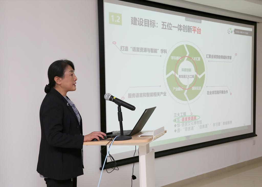会上,中心常务副主任杨尔弘教授从中心建设定位与整体目标、目标完成情况及当前成果、共建情况三个部分详细介绍了中心建设情况,重点展示了中心在资源建设及应用、智库建设、平台建设、人才汇聚、学科建设等方面取得的成效。随后杨尔弘教授汇报了中心在发展过程中遇到的问题与挑战以及下一步发展思路,恳请与会专家提出建议。