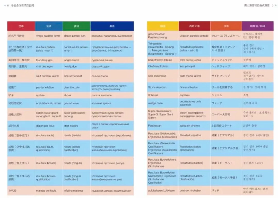 《冬奥会体育项目名词》是冬奥会术语库的书面呈现本,词典从冬奥术语平台7100余条8个语种对齐的名词中提取出最基本的3000余条冬奥体育名词,采用融合出版的形式,纸质内容与冬奥术语平台融合联动,读者不仅可以在纸质出版物上查询体育项目的多语种译文,还可以通过多种终端查询体育项目名词的详细释义和用法,为冬奥历史首创。该书在北京2022年冬奥会和冬残奥会组织委员会、教育部、国家语言文字工作委员会和全国科技名词审定委员会的支持和指导下,委托北京语言大学研制,刘和平教授担任主编,“冬奥术语库”项目核心成员、北京语言大学讲师韩林涛担任副主编,北京语言大学语言资源高精尖创新中心常务副主任杨尔弘教授担任执行主编。成书由商务印书馆出版,作为公益产品,不定价、不销售。