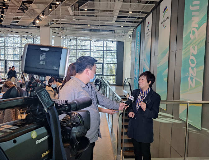 “冬奥术语库”项目首席专家、北京语言大学刘和平教授详细介绍了《冬奥会体育项目名词》编译和冬奥术语平台研制过程。现场,刘和平教授还接受了中央电视台、北京广播电视台、新京报等媒体专访。