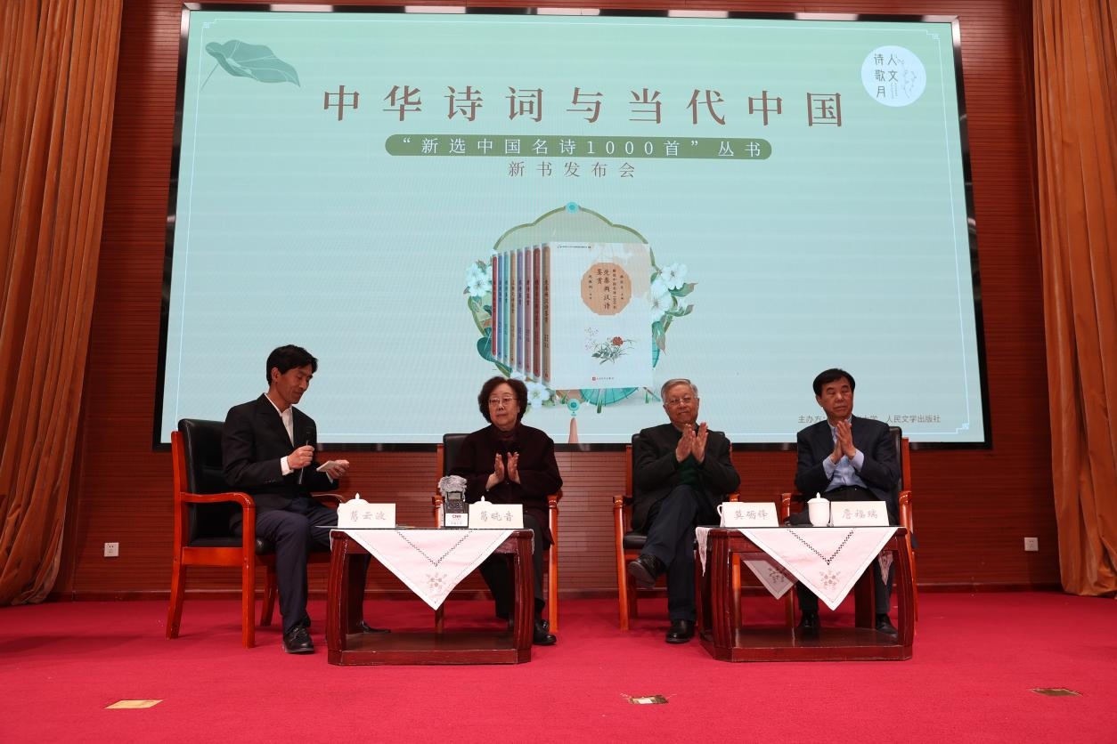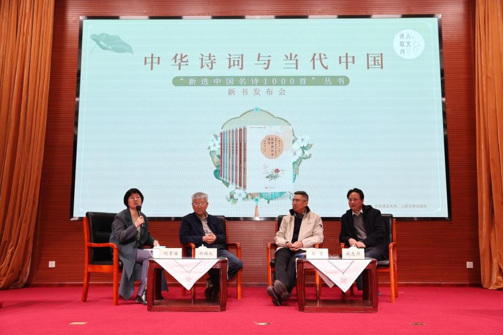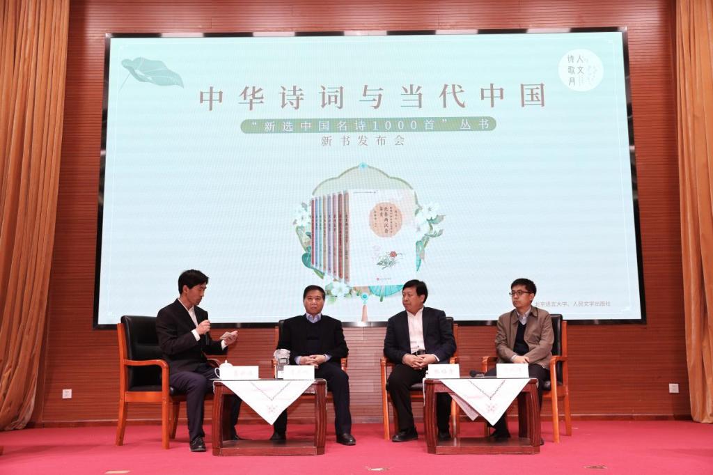 2023年3月18日下午,“新选中国名诗1000首”丛书新书发布会暨“中华诗词与当代中国”研讨会在北京语言大学逸夫报告厅举办。本次会议由北京语言大学和人民文学出版社联合主办,语言资源高精尖创新中心、中华文化研究院联合承办。
